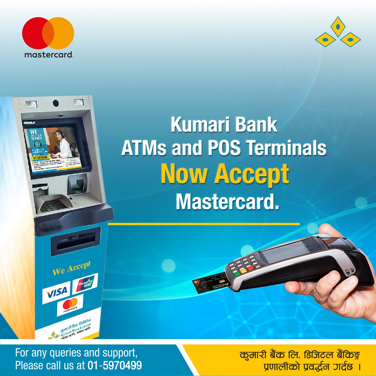 कुमारी बैंकको एटीएम तथा पीओएसमा मास्टर कार्ड प्रयोग गर्न सकिने