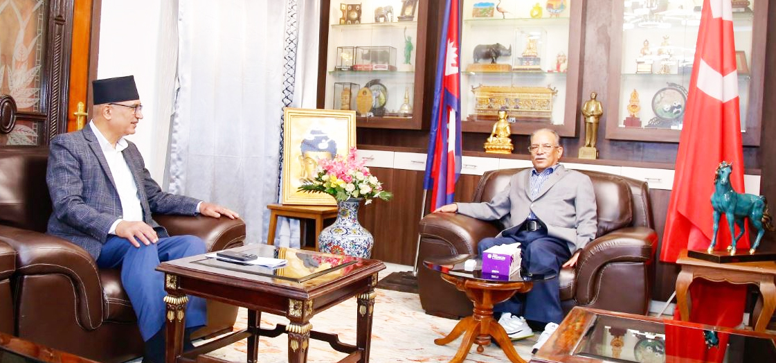 काठमाडौं । एमाले नेता तथा अर्थमन्त्री विष्णु पौडेलले प्रमुख प्रतिपक्ष दलका नेता तथा माओवादी केन्द्रका अध्यक्ष पुष्पकमल दाहाल प्रचण्डसँग भेट गरेका छन् । बिहान प्रचण्ड निवासमा पुगेर भेटवार्ता गरेको अर्थमन्त्रीको सचिवालयले जानकारी गराएको छ ।