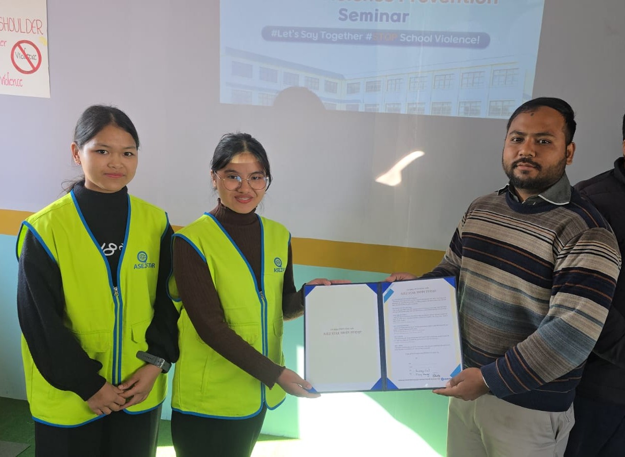 ललितपुर । इमाडोल परमेश्वरको मण्डली विद्यालय विद्यार्थी स्वयंसेवा सङ्गठन (ASEZ STAR) दले आज पौष २ गते “School Violence Prevention” सेमिनार बृहत् रुपमा सम्पन्न गरेको छ । कोपिला अँग्रेजी मा.वि., सानागाउँमा एक कार्यक्रमकाबीच आयोजना भएको उक्त कार्यक्रममा स्कूलका संयोजक (Co-ordinator) र प्राध्यापकहरु सहित ४५ भन्दा बढी विद्यार्थीहरुको उपस्थिति रहेको थियो ।