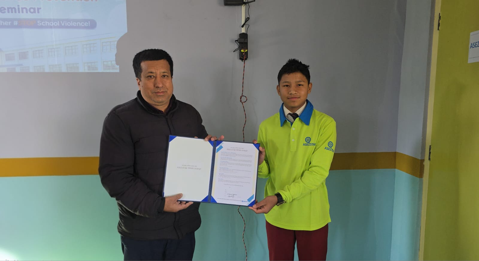 सेमिनारमा परमेश्वरको मण्डली विद्यालय विद्यार्थी स्वयंसेवा सङ्गठन (ASEZ STAR) को परिचयात्मक भिडियो हेर्दै ASEZ STAR सदस्यहरुले School Violence Prevention सम्बन्धमा प्रस्तुति दिनुभएको थियो । प्रस्तुतिबाट हाल विद्यालयहरुमा प्राध्यापकहरुको अनुपस्थितिमा भईरहेको विद्यालय हिंसा (School Violence) को परिचय, त्यसले विद्यार्थीहरुको व्यक्तिगत दैनिक जीवन मात्र नभएर पुरै जीवनमा पर्न सक्ने प्रभाव, समाजमा पर्ने असरहरु र निम्त्याउने सक्ने जोखिमहरु, सो न्यूनिकरणका लागि चाल्नुपर्ने कदहरु र ASEZ STAR ले विद्यालय हिंसा हटाउन गरिरहेको अभियानहरुको विषयमा जानकारी गराईएको थियो ।