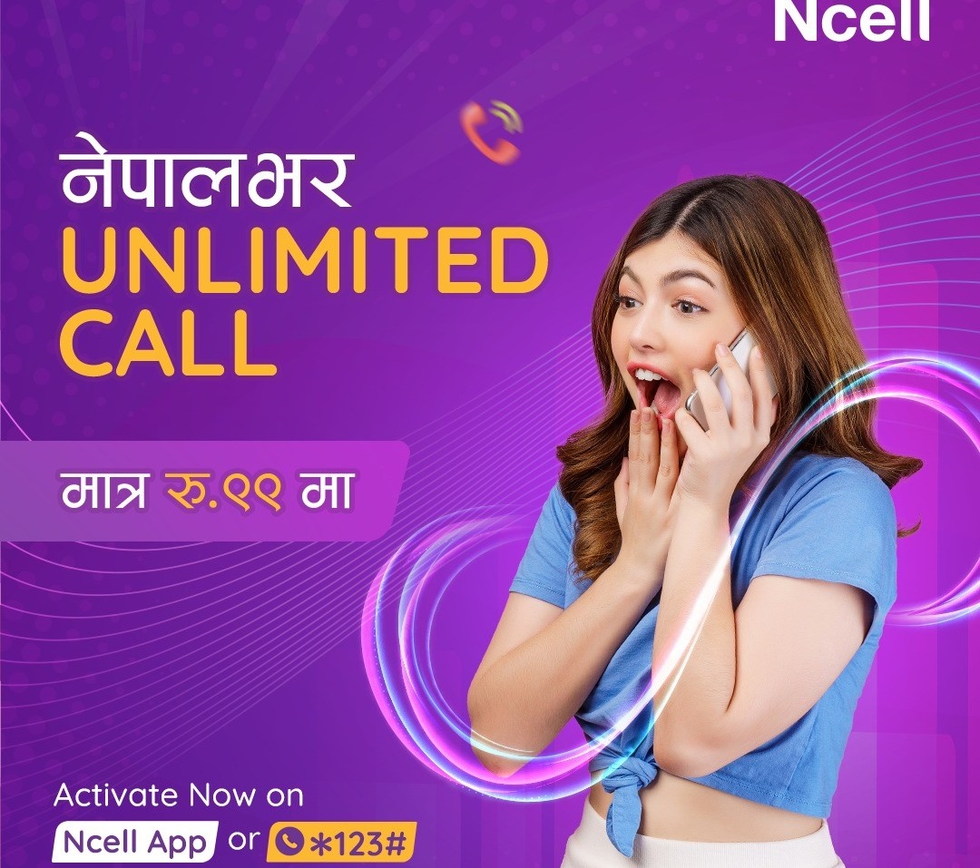 एनसेलले ल्यायो साप्ताहिक ९९ रुपैयाँमा अनलिमिटेड अल नेपाल कलसहितका रिन्यूअल प्याक